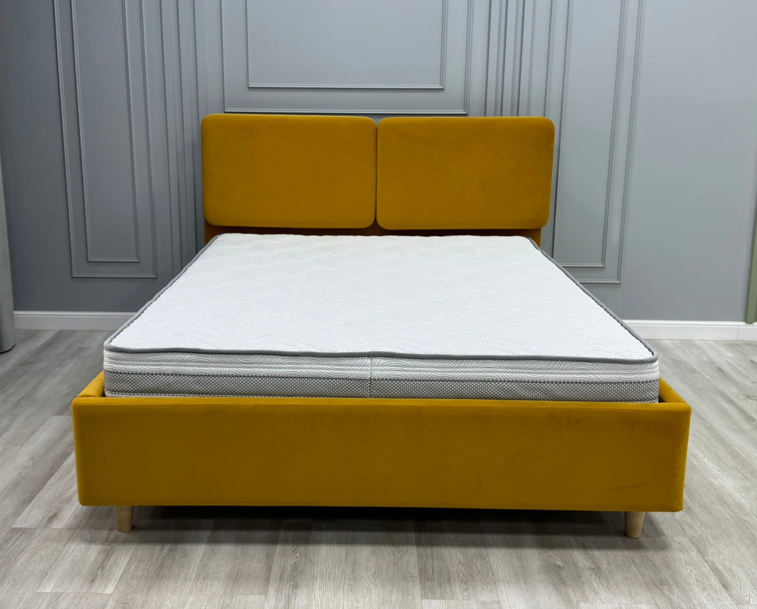 Интерьерная кровать «Selena» – эксклюзивная модель для фирменных салонов в трендовом минималистичном дизайне со съемными подушками и возможностью выбора высоты ножек.