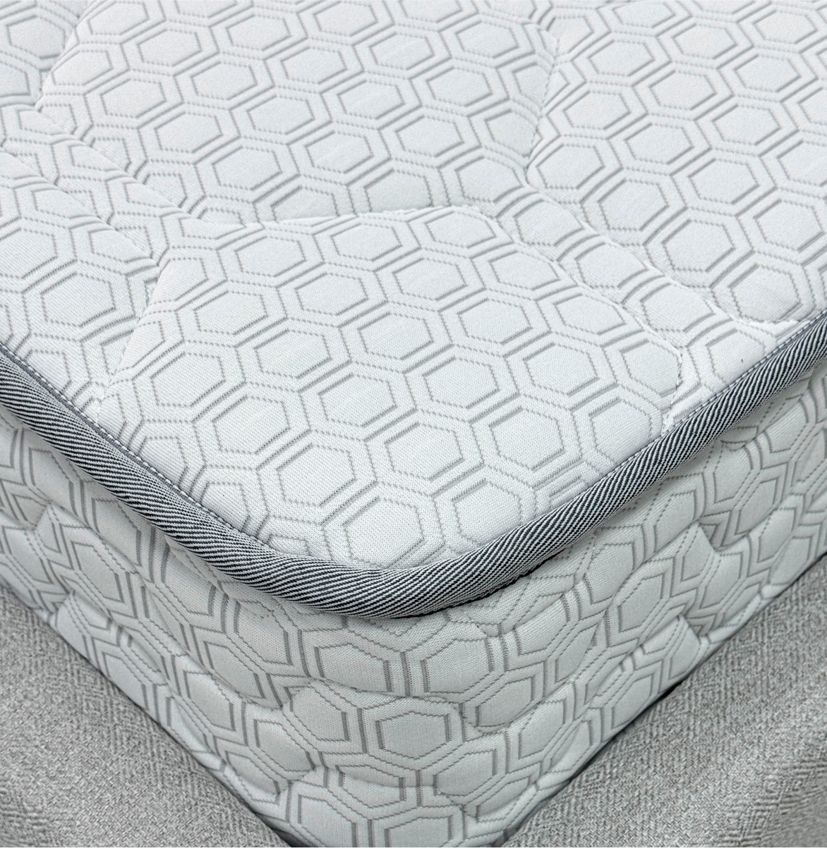 Трикотаж «Carbon» — современный и стильный материал с оригинальным рельефным рисунком «соты», который придаёт матрасу эффектный и премиальный вид. Высокая плотность ткани гарантирует её прочность и долговечность, а эластичная структура обеспечивает идеально ровное прилегание к наполнителю, сохраняя гладкость поверхности на протяжении всего срока службы. Материал обладает хорошей воздухопроницаемостью, что помогает поддерживать комфортный микроклимат во время сна, и устойчив к износу, сохраняя свой внешний вид даже при длительной эксплуатации.